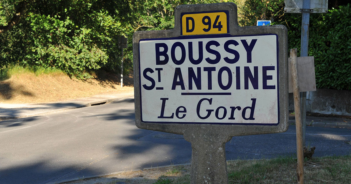 Lieu planté de « godeux » (arbrisseaux épineux), assise essartée gagnée par les hommes sur la forêt tutélaire (Sénart), est désigné dans les textes anciens (XIIIe s) comme Bucciacus ou Butiaco, Bussiacum ou Buciacum / des noms de forme latine décadente nés de « Buxus », mais aussi «Buisson» que l'idiome local faisait prononcer Bouss-î, : d'où «Bussy», «Bucy», «Boucy», et enfin «Boussy»; Boussy-Saint-Pierre au XIVe s, Boussy Saint-Antoine au XVe s.